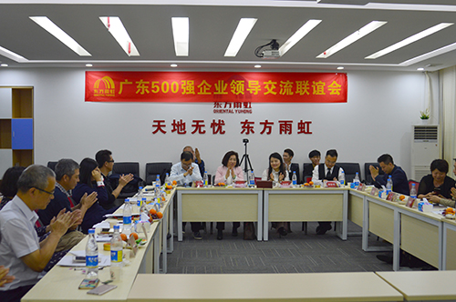 3與28日,廣東企業(yè)500強(qiáng)高層聯(lián)誼活動在廣東東方雨虹會議室召開,來自廣東省20余位500強(qiáng)企業(yè)高層出席。本次會議由廣東省企業(yè)聯(lián)合會主辦、廣東東方雨虹承辦。
