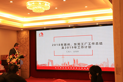 1月22日上午,東方雨虹惠州、東莞生產(chǎn)基地2018年度工作總結(jié)表彰暨2019年工作部署大會(huì)在惠州召開。 會(huì)上,惠州、東莞生產(chǎn)基地廠長(zhǎng)趙海濤以“真相信、真認(rèn)同、真執(zhí)行”為主題作2018年工作總結(jié)暨2019年工作部署匯報(bào)。他表示,2018年惠州生產(chǎn)基地完成集團(tuán)中心交予的責(zé)任目標(biāo),從指標(biāo)完成情況、生產(chǎn)管理、質(zhì)量控制、物流配送、安全環(huán)保、精益生產(chǎn)、二期項(xiàng)目建設(shè)管理等方面做出總結(jié),重點(diǎn)對(duì)2019年莞惠生產(chǎn)基地各項(xiàng)重點(diǎn)工作做出明確部署。