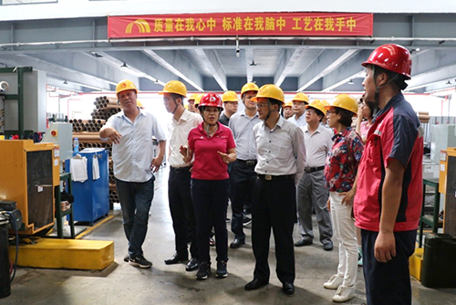 5月16日上午,廣西來賓市長雷應敏、副市長羅勇考察調研東方雨虹杭州生產基地,建德市長朱歡、副市長夏喜生等陪同調研。杭州生產基地廠長兼建設總指揮李景絨熱情接待了調研組。