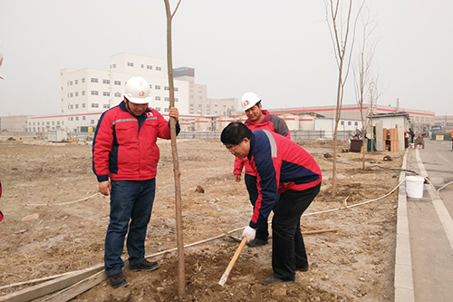 3月12日,是一年一度的植樹節(jié),唐山東方雨虹舉辦了以“樹立文明生態(tài)理念,推進(jìn)園林工廠建設(shè)”為主題的植樹節(jié)活動(dòng)。下午13:30由生產(chǎn)基地領(lǐng)導(dǎo)及職能人員30余人在基地的空地植樹40棵,以實(shí)際行動(dòng)踐行東方雨虹“綠色工廠”的經(jīng)營(yíng)理念,為唐山生產(chǎn)基地再添新綠。