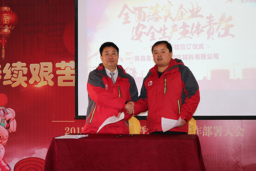 1月19日,青島東方雨虹在生產(chǎn)基地內(nèi)舉行安全責任狀簽訂儀式。