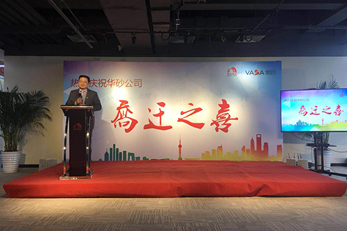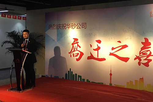 接著,由華砂公司董事長方世畢先生致辭,他感謝了前來祝賀的嘉賓,總結(jié)了華砂公司過去的工作并對(duì)接下來的發(fā)展方向做出重要指示,同時(shí)表明華砂總部搬遷到花橋是一個(gè)新的起點(diǎn),華砂公司因砂而生、因砂而美,也必將因砂而走向世界。