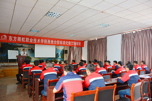 接著,東方雨虹職業技術學院西南分院院長李曉明講話,簡要介紹了本次培訓的目的及主要內容,表示防水施工十分重要,打造系統防水服務,實行標準化施工更為重要,要求每一位學員認真領會,深刻掌握。