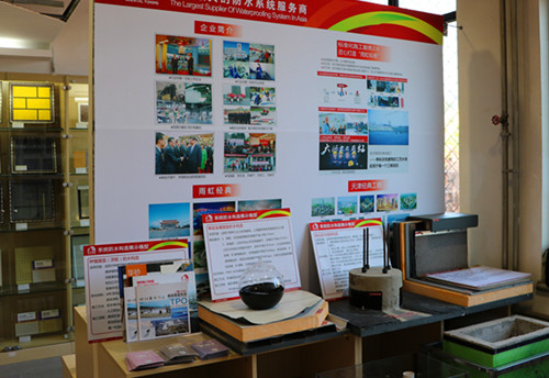 東方雨虹企業(yè)宣傳資料及防水構(gòu)造模型在建筑構(gòu)造展示室內(nèi)展示