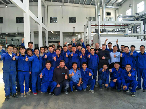 4月23日,天鼎豐12號生產(chǎn)線首次試機(jī),一次性調(diào)試成功并投產(chǎn)。 天鼎豐6號車間于2016年5月底開工建設(shè),設(shè)有11號及12號兩條聚酯紡粘針刺胎基布生產(chǎn)線。兩條生產(chǎn)線均以2014年中國紡織工業(yè)聯(lián)合會鑒定通過的《高效節(jié)能聚酯紡粘針刺防水卷材胎基布成套裝關(guān)鍵技術(shù)與產(chǎn)業(yè)化》的科技成果為基礎(chǔ),并做了多項改進(jìn)。新生產(chǎn)線配備了德國DILO公司先進(jìn)生產(chǎn)設(shè)備,采用高效率、低能耗、一步法生產(chǎn)的理念,多品種柔性化工藝技術(shù),從主生產(chǎn)線、配套設(shè)備及公用工程實現(xiàn)計算機(jī)的控制與管理,具有創(chuàng)新性和自主知識產(chǎn)權(quán)。