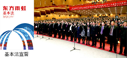 為表達(dá)對基本法嚴(yán)格遵守和堅決擁護(hù)的決心,會議現(xiàn)場全體東方雨虹人舉行了莊重的宣誓儀式,堅決貫徹執(zhí)行企業(yè)基本法不動搖。