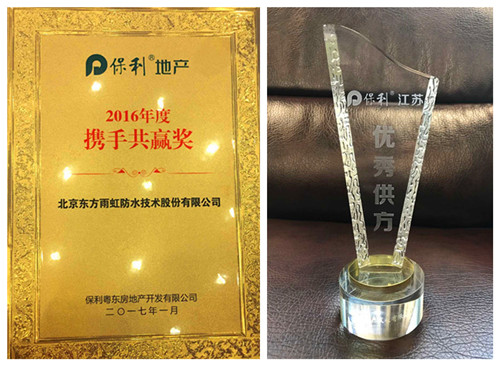 1月12日、13日,由保利江蘇房地產(chǎn)發(fā)展有限公司主辦的“2016工程成本管理中心年度會(huì)議”和保利地產(chǎn)粵東公司舉辦的“保利粵東2016年度供應(yīng)商大會(huì)”分別在江蘇和東莞召開。東方雨虹憑借過硬的綜合實(shí)力喜獲保利地產(chǎn)年度合作“優(yōu)秀供方”“2016年攜手共贏”榮譽(yù)稱號(hào)。