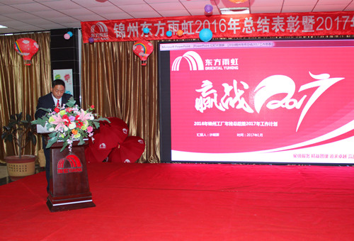 1月19日上午,東方雨虹錦州生產(chǎn)基地舉行2016年度總結(jié)表彰暨2017年度工作部署大會,當(dāng)?shù)卣I(lǐng)導(dǎo)、全體員工及部分家屬齊聚一堂,分享工作經(jīng)驗,表彰先進(jìn),齊頭并進(jìn),贏戰(zhàn)2017。