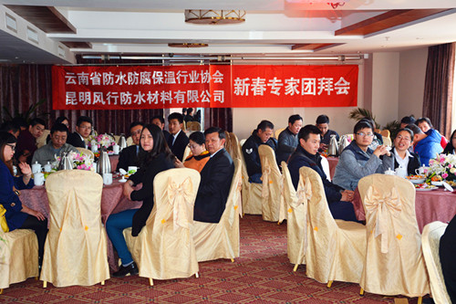 由云南省防水防腐保溫行業(yè)協(xié)會、昆明風(fēng)行防水材料有限公司主辦的2016年新春專家團(tuán)拜會,在鼎易大酒店拉開帷幕。來自云南省防水防腐保溫行業(yè)協(xié)會、房地產(chǎn)業(yè)協(xié)會、設(shè)計(jì)院、各大型房地產(chǎn)企業(yè)等技術(shù)專家代表近30人參加了此次會議。