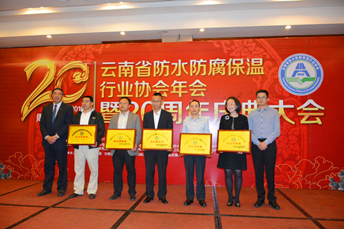 風(fēng)行防水受邀參加云南省防水防腐保溫行業(yè)協(xié)會2015年年會暨二十周年慶典大會。會上,風(fēng)行防水榮獲“云南省防水防腐保溫行業(yè)協(xié)會20周年突出貢獻(xiàn)獎”殊榮,風(fēng)行防水總經(jīng)理呂學(xué)強(qiáng)獲任“云南省防水防腐保溫行業(yè)協(xié)會常務(wù)副會長”,副總經(jīng)理劉光宗獲聘“云南省防水防腐保溫行業(yè)協(xié)會專家組組長”,總工程師李曉明獲聘“云南省防水防腐保溫行業(yè)協(xié)會專家組成員”。 5月20日