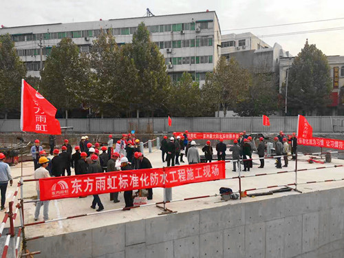 10月16日,焦作市人民防空辦公室組織各區縣人防辦相關領導、在建和待建人防工程項目負責人、具有人防功能的樓盤相關責任方代表共計170余人,觀摩東方雨虹武陟縣人防項目標準化施工工地。 觀摩團對東方雨虹復合式防水構造方案和機械化施工工藝進行現場考察,并就現場防水施工及材料與東方雨虹進行了深入交流,對東方雨虹的標準化施工給予了高度評價。