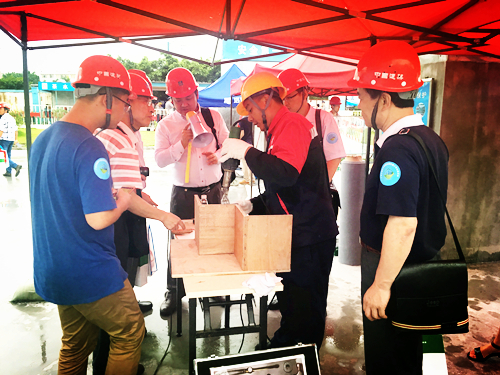 隨后,與會嘉賓前往琶洲寶境廣場項目觀摩綠色施工技術現場。東方雨虹在現場進行聚氨酯防水涂料、聚合物水泥防水涂料、自粘卷材及高分子卷材的實地操作演示,配合防水住宅系統、種植屋面系統、TPO單層屋面系統等模型的展示與解說,吸引了大量嘉賓的駐足與觀看,大家興致勃勃地就防水相關問題進行提問與交流。