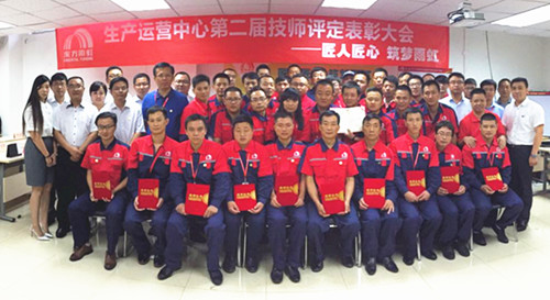 7月20日上午,東方雨虹生產運營中心于北京舉辦了第二屆技師表彰大會,公司執行董事長向錦明,生產運營總監陳永初,生產運營副總監陸殿富、馬到原,生產運營總監助理朱方強以及各生產基地的領導出席現場。 本屆技師的選拔與評定,技師們歷經重重考驗,不僅對思想作風、行為規范、組織紀律及工作態度進行了全面評估,還對在工作中要做到認同雨虹文化,遵章守紀、誠實守信、恪盡職守,傳達正能量,做合格的尊貴有禮雨虹人等各方面進行了系統考評,同時經過“安全與質量管控、理論知識、技能操作、創新成果、技改成果、計算機操作、輔導徒弟技能、培訓與學習”等10余項嚴格的綜合考核與評定,最終從9個生產基地20名候選人中選拔出涂料車間、卷材車間、設備能耗部三大類初級技師,共計9名。其中,上海生產基地3名,岳陽生產基地1名,錦州生產基地2名,徐州生產基地1名,惠州生產基地2名。 生產運營總監陳永初強調:“技師評選要全面、系統地去做,以提高一線生產工人隊伍水平為核心目標,打造專業化、產業化的工人隊伍戰斗力?!? 本屆技師選拔與評定是東方雨虹生產運營中心第二次系統、全面地對一線生產工人進行各項考評,對于全面打造工匠精神,塑造匠人匠心的一線生產隊伍,具有重要意義。