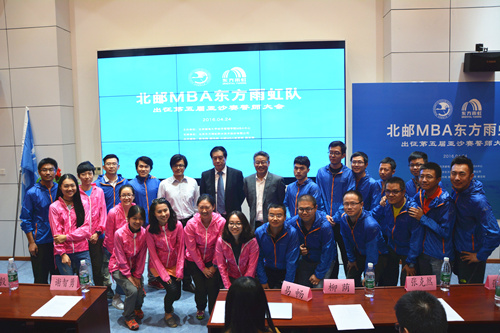 2016年4月24日,由東方雨虹冠名贊助的北京郵電大學(xué)(以下簡(jiǎn)稱“北郵”)MBA代表隊(duì)出征第五屆亞沙賽誓師大會(huì)在北郵經(jīng)管樓舉行。北郵MBA代表隊(duì)本次參賽由東方雨虹全權(quán)贊助,參賽隊(duì)以“北郵MBA東方雨虹隊(duì)”全程冠名。