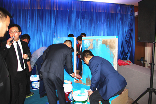 東方雨虹民建公司副總經理鄭曉華先生發表“大變革時代下的建材零售”的主題演講,他指出2016年經濟新常態是個高頻詞匯,面對新的市場形式,東方雨虹的代理商也要快速成長以適應市場變化。   隨后,會議邀請民建公司副總經理熊衛鋒講解“藍色金典”產品知識,并現場安排產品實操。各代理商紛紛拿起工具親身體驗,對產品施工的體驗和優質效果大加贊賞。