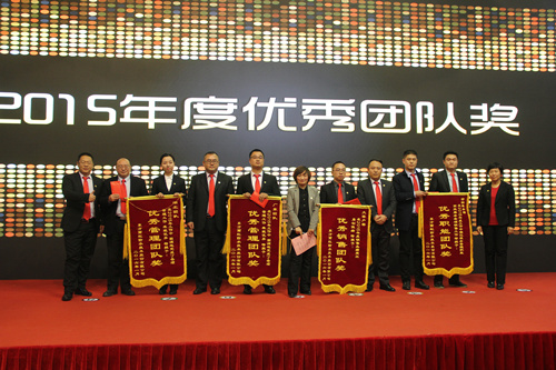 東方雨虹防水集團副總裁、工程渠道事業部董事長張志萍以《為榮譽而戰,為親人而戰,我們全力以赴》為題,回顧了工渠事業部2015年的工作成果,部署2016年發展規劃。東方雨虹工渠華東片區總經理馬秉珠、營銷服務部總經理王玉飛、售后服務部經理常麗君也分別就2015年華東團隊的成功經驗、2015年工渠市場工作方面的成功與不足、2015年售后服務等方面的工作做了經驗分享和匯報。   本次大會表彰了2015年表現突出的優秀員工,共設立:突出貢獻獎、優秀新人獎、優秀員工獎、優秀管理員工、優秀團隊獎等9項獎項,共計130余人及4個團隊獲獎,現場為他們頒發了證書及獎金。