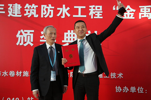 東方雨虹經(jīng)濟技術部經(jīng)理助理王強代表公司領取“金禹獎”銀獎