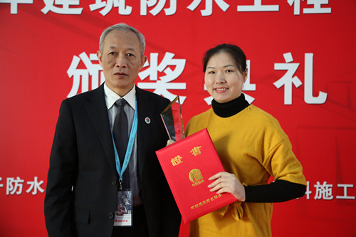 上海東方雨虹經(jīng)濟技術部總工助理張嬋代表公司領取“金禹獎”金獎