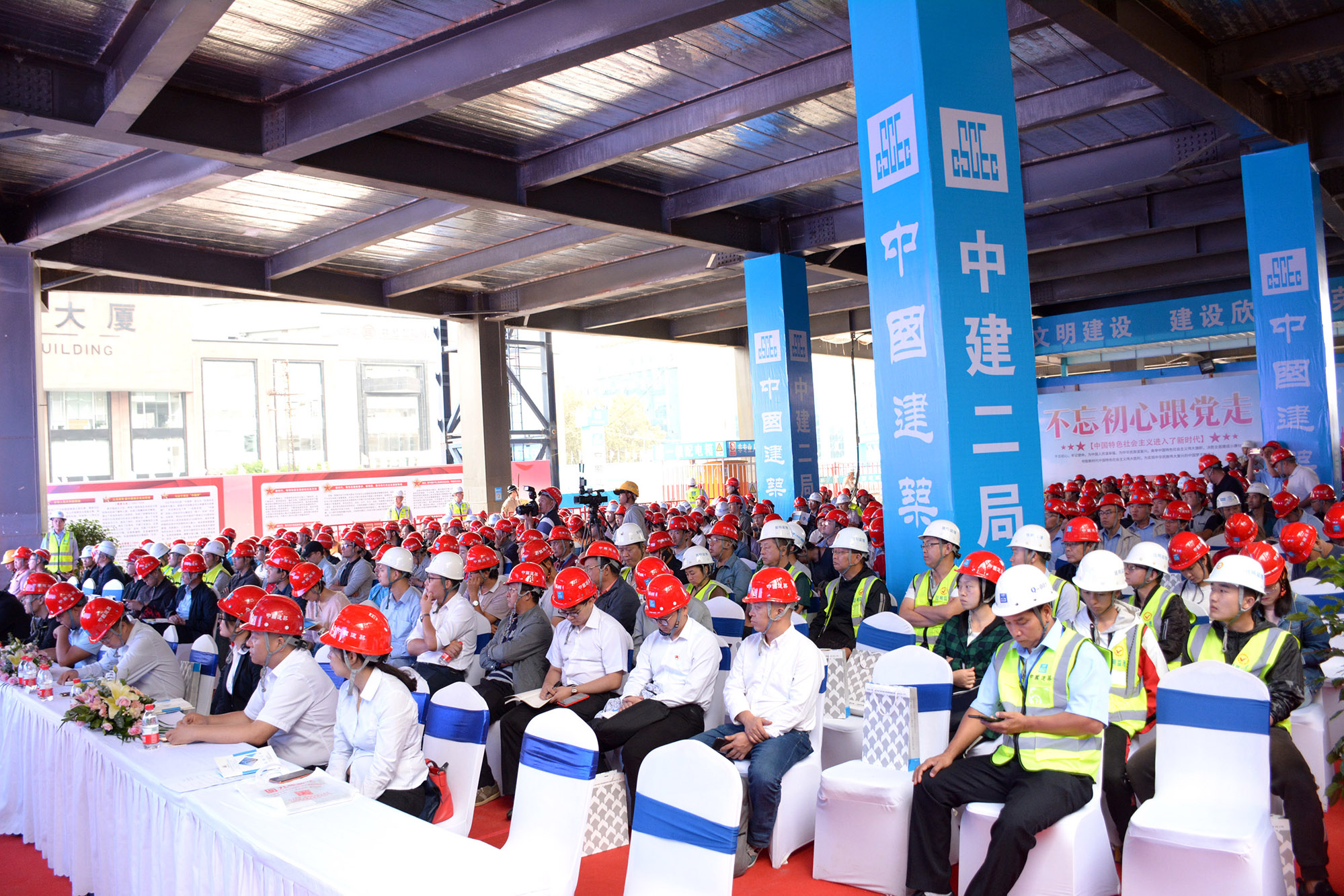 本次活動由云南省住房和城鄉(xiāng)建設廳指導,中共云南省建筑業(yè)協(xié)會支部委員會、云南省建筑業(yè)協(xié)會主辦,中共中建二局昆明春之眼商業(yè)中心項目支部、中國建筑第二工程局有限公司云南分公司承辦,來自國家、云南省內(nèi)知名各總包單位以及云南省建筑業(yè)協(xié)會會員單位約200余人參加。
