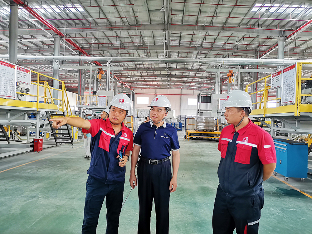 在東方雨虹廣州生產研發物流基地總經理助理劉夢龍的陪同下,李院長一行參觀了高分子卷材車間。