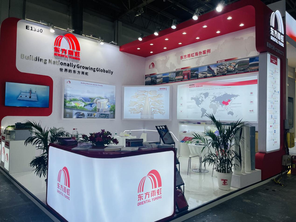 在此次展會上,東方雨虹結合現場實物模型,向到場境內外采購商多維度展示產品集群、服務體系、解決方案,獲得廣泛關注。