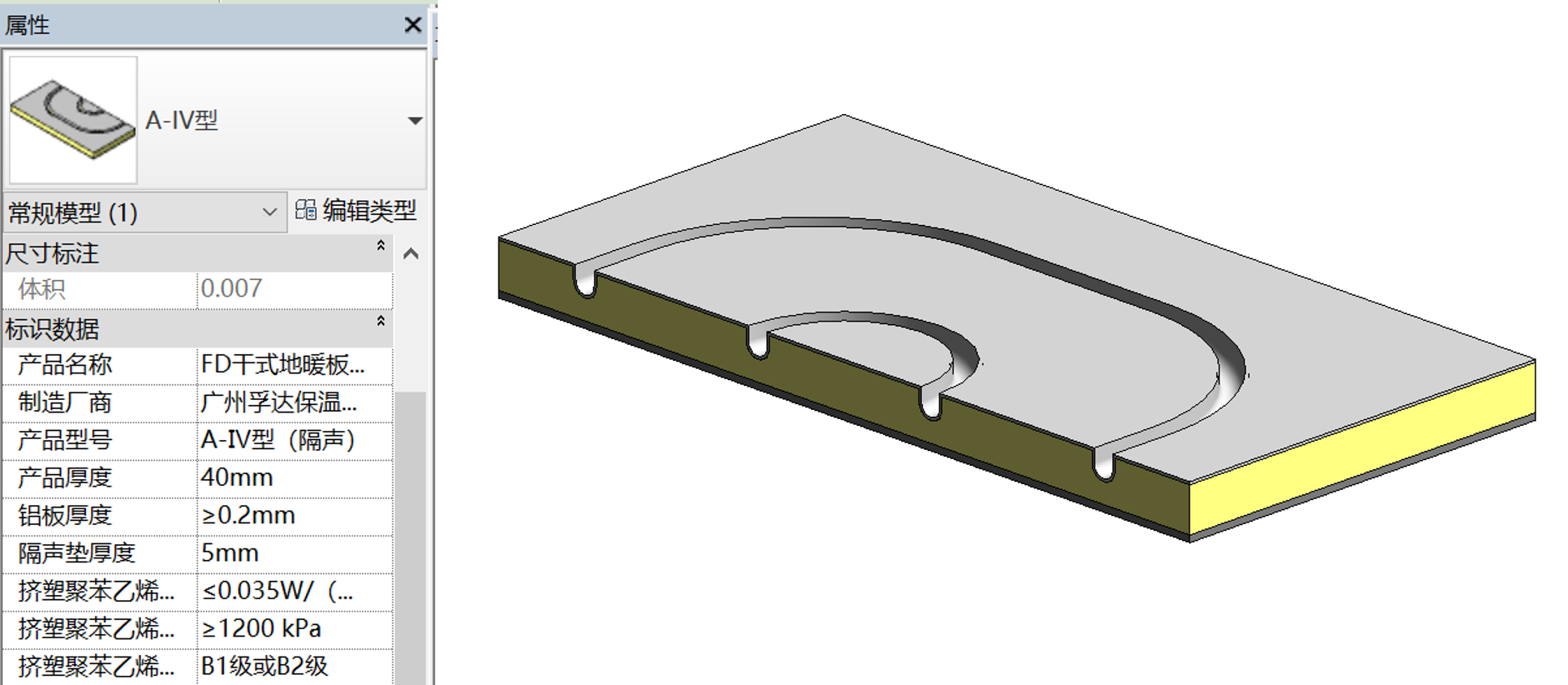 例如:FD干式地暖模塊(隔聲型)A-IV型,該產(chǎn)品族信息及模型如下。