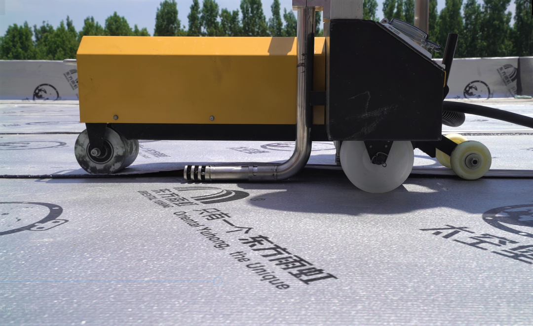 夏季施工,黑色卷材吸熱后迅速升溫,卷材表面溫度近50℃,高溫導(dǎo)致瀝青稀軟,卷材施工后表面鼓包,嚴(yán)重影響卷材與基層的粘接效果。